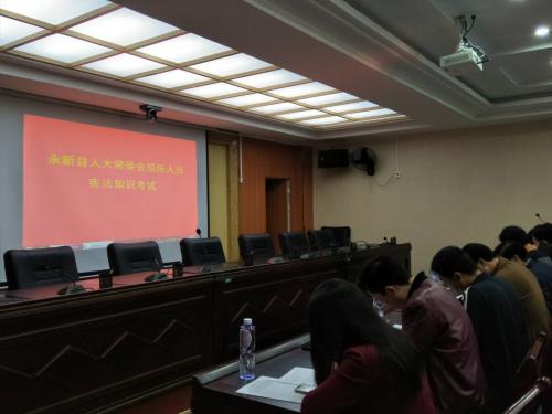 3月20日下午3:00在县法院四楼会议上,永新县人大常委会集中组织拟任人员参加宪法知识考试,提高拟任人员的法律知识水平,提升拟任人员的学法用法意识。